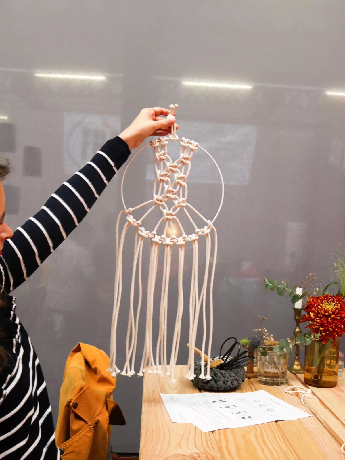 J’ai passé 3 belles journées en excellente compagnie à apprendre à manier le crochet et les nœuds! Comme toujours, j’ai adoré ses moments de partage et de découverte où chacun repart avec sa création sous le bras et des étoiles de fierté dans les yeux 😉 Merci encore à vous <3