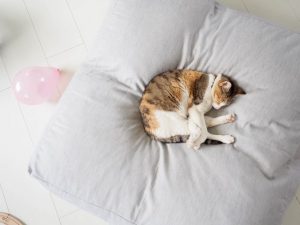 – le confort par rapport à Loup qui n’est pas directement sur le carrelage froid et très dur.