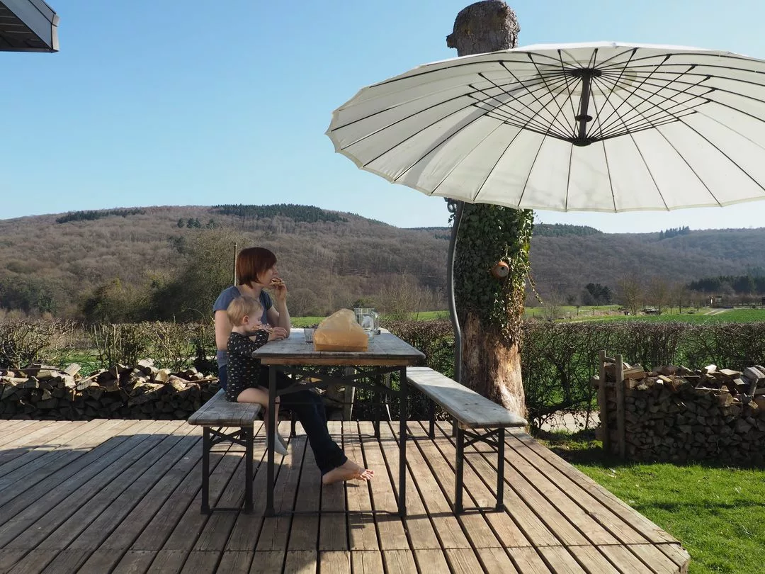 Le logement est super bien pensé et aménagé comme à la maison, ça été un régal de faire la cuisine ou de buller sur le canapé en regardant le magnifique paysage. Nous avons même pu manger dehors et profiter de la terrasse avec toujours cette superbe vue sur la forêt et les ruines de la Villa Gallo Romaine.