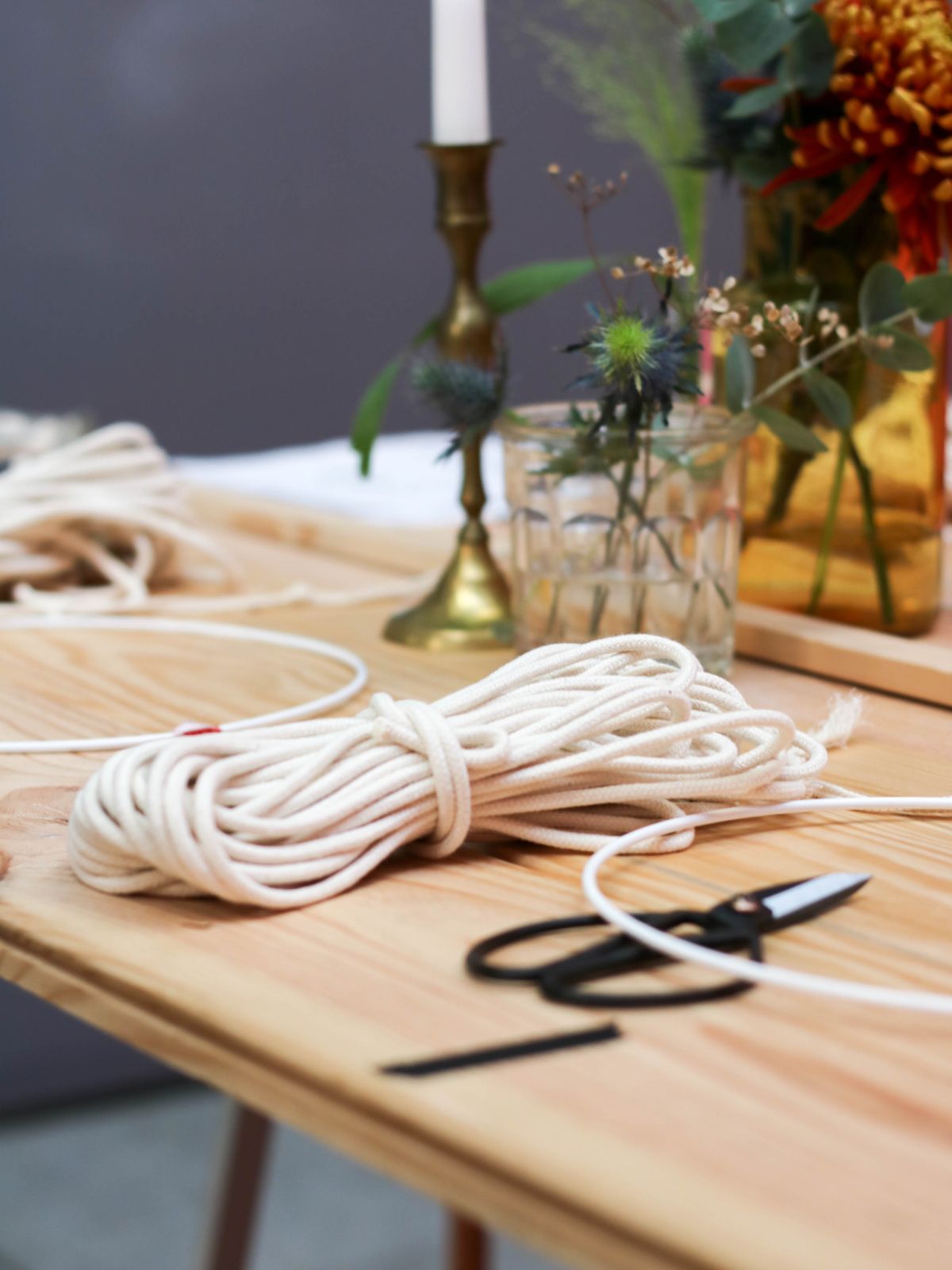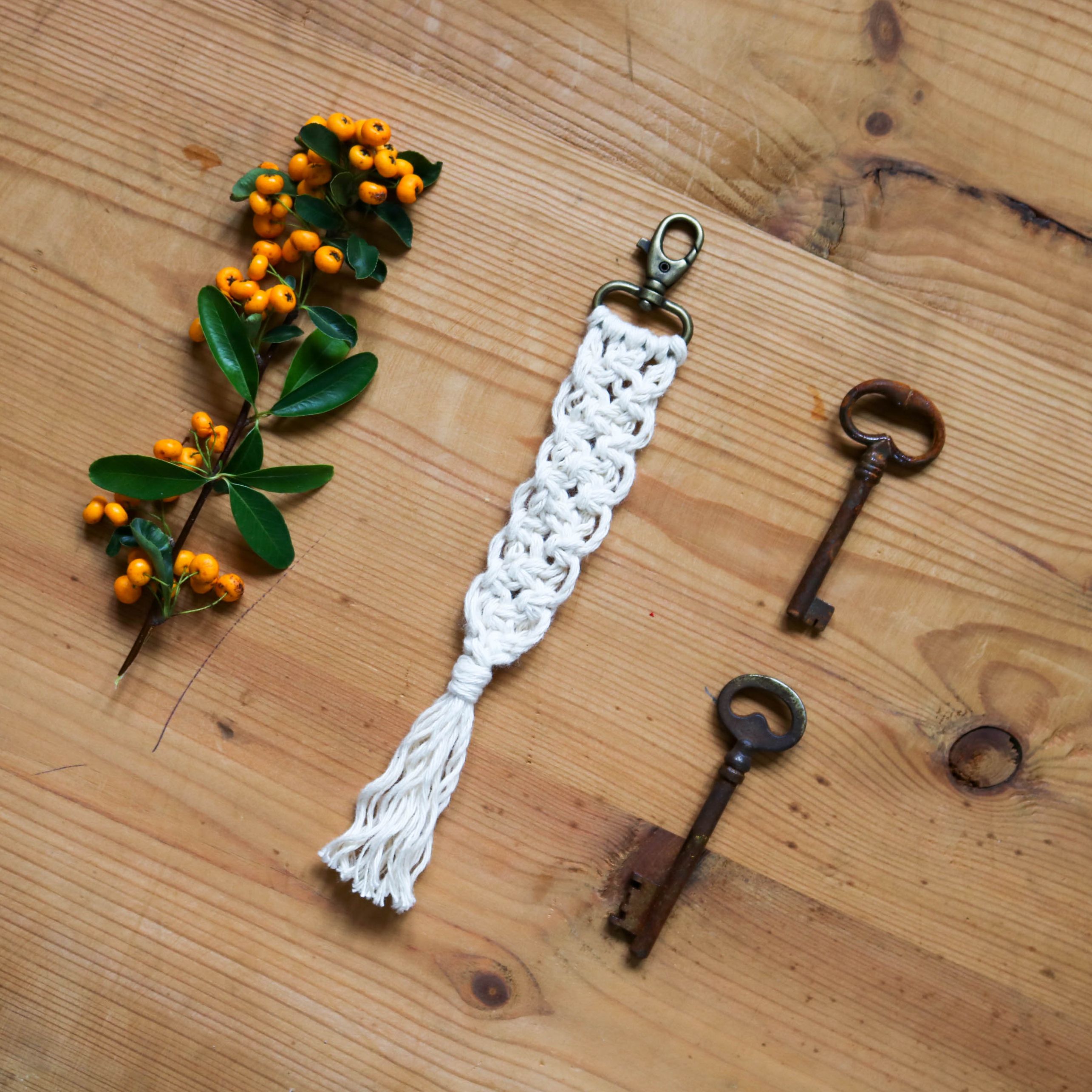 Projets réalisés: paniers et maniques au crochet avec du fil XXL, décoration murale et porte clés en macramé.