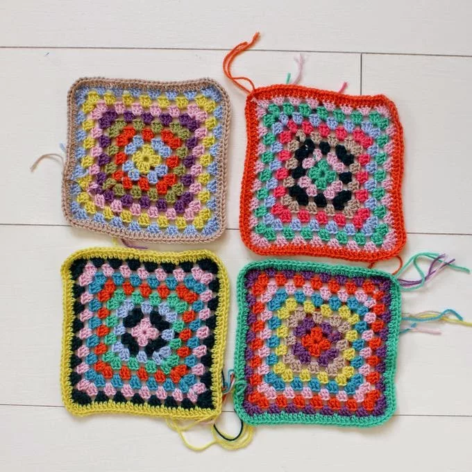 Premier rendez-vous pour le CAL Be Happy de Purple Laines. Objectif cette semaine = 7 carrés à réaliser, pour l’instant je n’en ai que 4. Alors vous en pensez quoi ? Vous aimez?