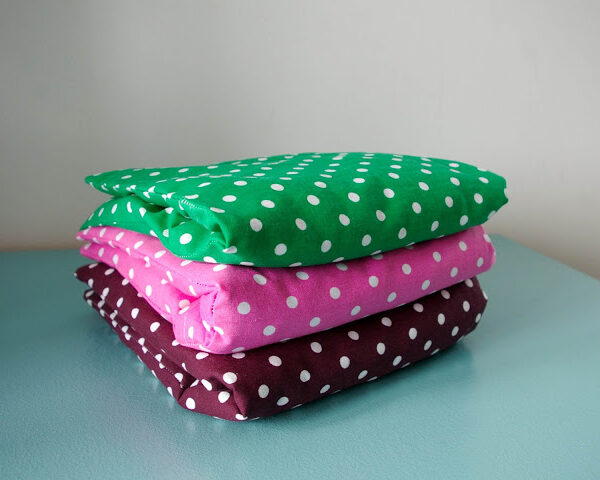 Du violet, du vert, du rose à pois viennent compléter les couleurs des housses des bouillottes en graines de lin. Pour ma[...]