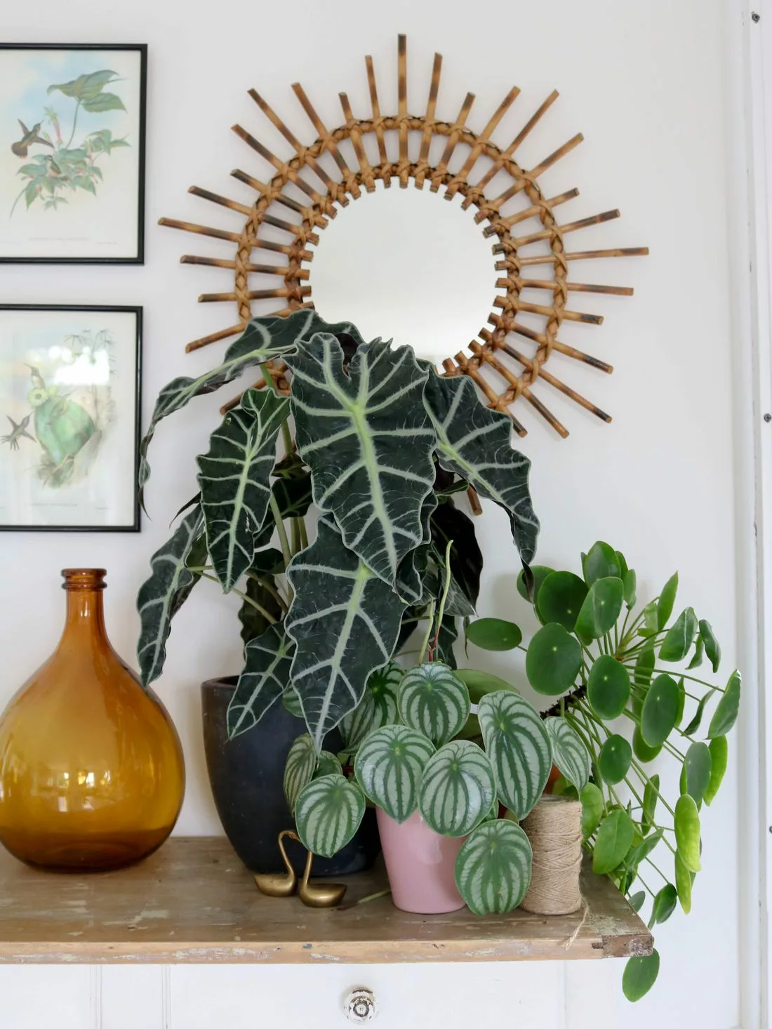Et on termine par une nouvelle plante : l’alocacia Amazonica que j’ai trouvé chez. Ikea. Elle a un charme fou ! Elle a rejoint la jungle sur le buffet blanc.