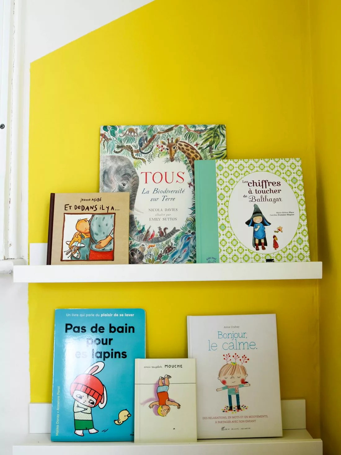 Puis, comme j’ai rejoint mes parents dans l’Aveyron avec Loup en train. J’ai anticipé les 10 heures de train avec des petites nouveautés côté jeux et livres. Dans mon sac, j’ai mis “Et dedans il y a” de Jeanne Ashbé (par rapport à la grossesse de ma sœur chérie), Tous – La biodiversité sur Terre un très beau livre avec de magnifiques illustrations que j’ai utilisé comme un livre de cherche et trouve, Les chiffres à toucher de Balthazar pour une première approche des tracés, Pas de bains pour les lapins qui parle du plaisir de se laver. Amir le grand chouchou de Loup, Anais Vaugelade a le chic pour raconter des histoires simples et illustrer avec douceur, ici on adore! Et on termine avec Bonjour le calme, un livre sur la relaxation joliment illustré (oui je sais je me répète ^^).