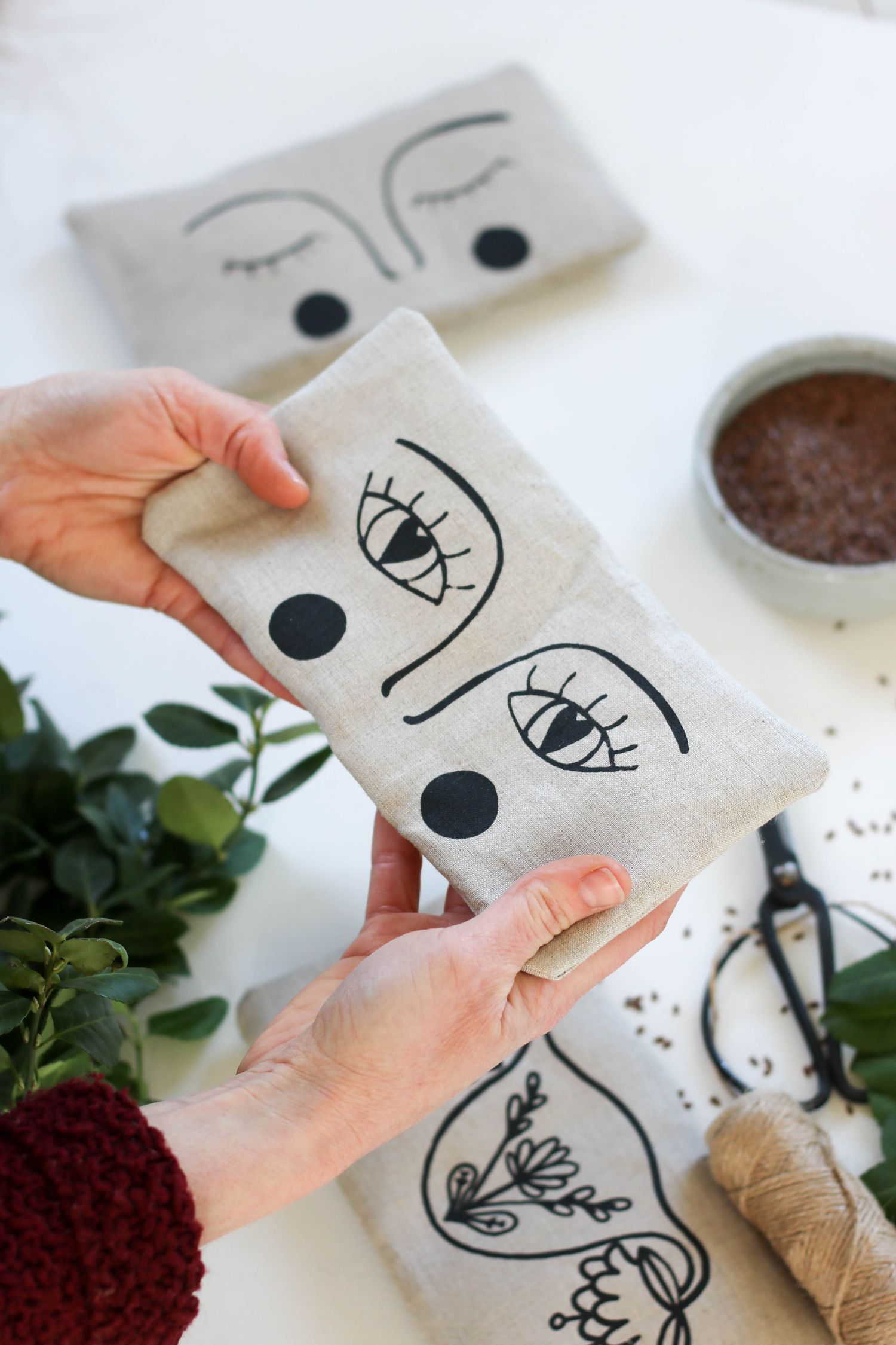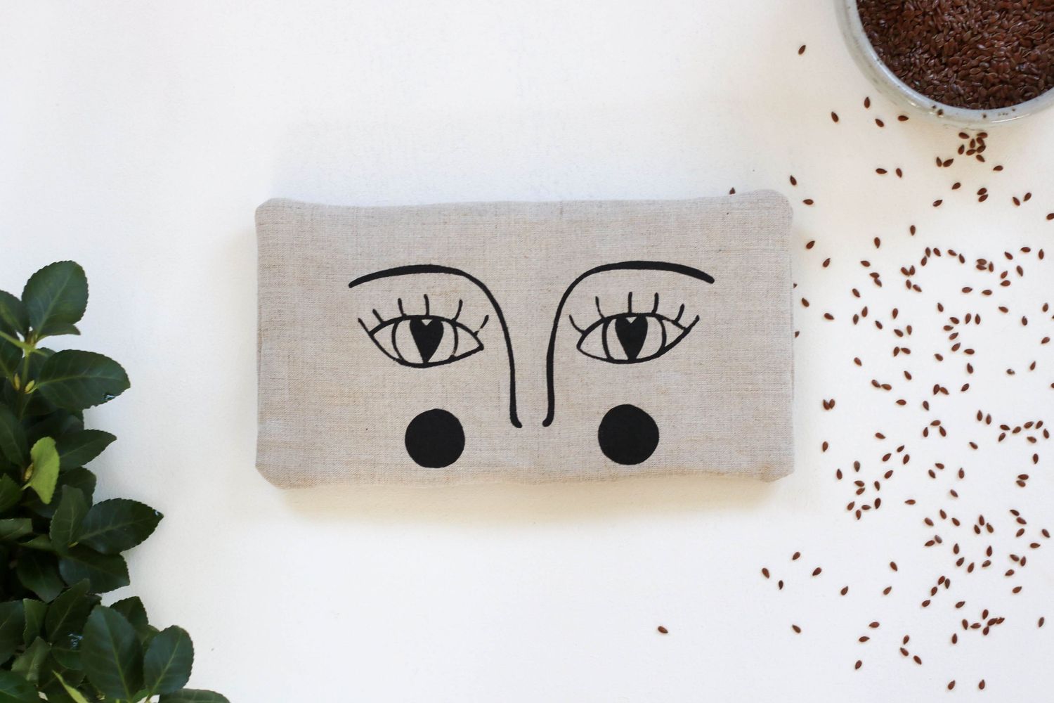 Comme je vous le disais dans un précédent article, je sérigraphie maintenant mes bouillottes en graines de lin (joie!). Aujourd’hui, je suis ravie de vous présenter ma première collection pour vos yeux (ou toute partie de votre corps qui a besoin d’attention 😉 ).