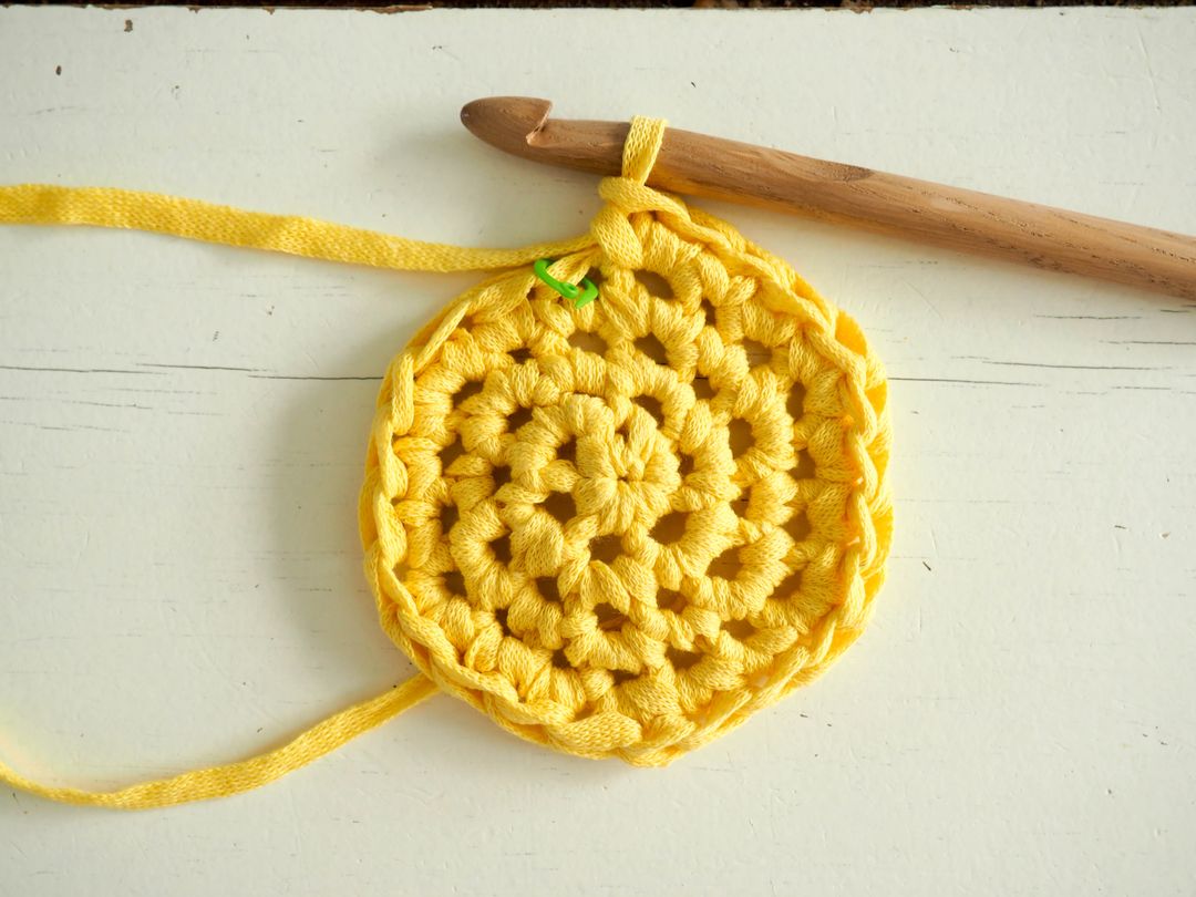 Pour mon coussin je me suis arrĂȘtĂ©e ici. Mais vous pouvez continuer jusqu’Ă l’infini (et au delĂ ). Puis, terminez par 1 maille coulĂ©e. Coupez le fil Ă 10 cm puis rentrez-le.