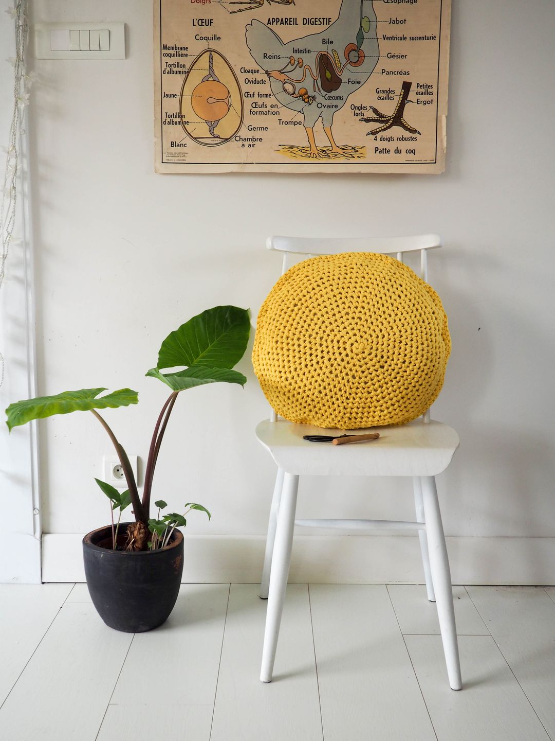 - un coussin rond Ă recouvrir (ici j’ai coupĂ© les bords d’un coussin carrĂ© de 40 cm)