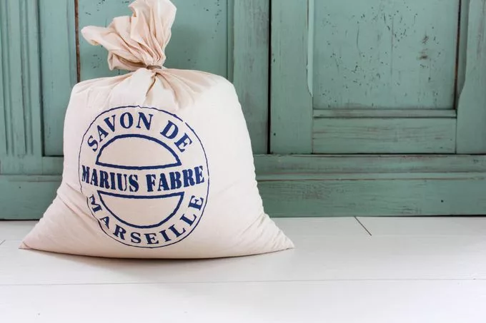 J'avais acheté un savon de Marseille chez Biocoop (qui est bien à l'huile d'olive ouf), j'ai fait des copeaux avec mon économe du coup.