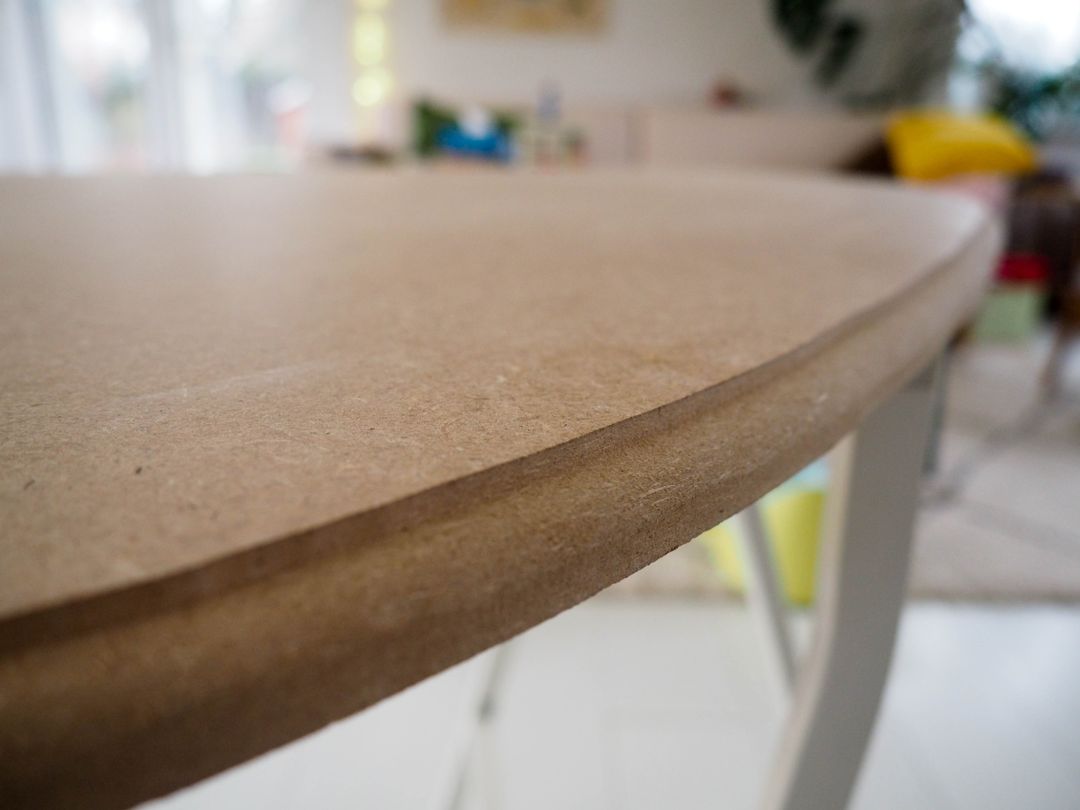 Avec ce DIY, nous avons utilisé un nouveau joujou: une défonceuse. Elle sert à faire de beaux bords et vous avez la choix de plusieurs formes. Nous avons donc défoncé les bords de la table, ce n’est pas parfait sur les arrondis mais cela nous convient.