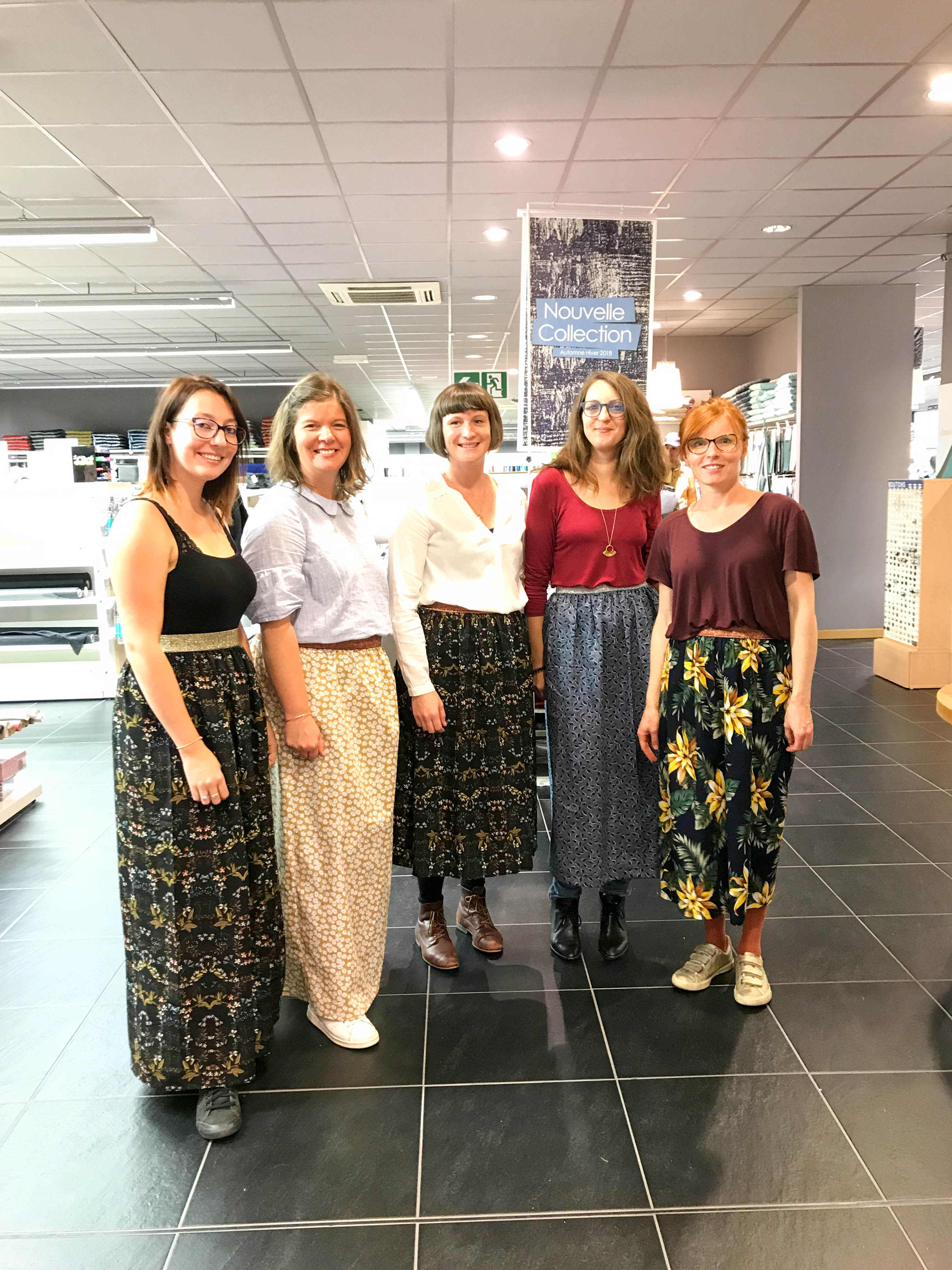Les machines à coudre ont chauffé ce samedi après-midi au magasin Mondial Tissus de Villeneuve d’Ascq. C’était pour moi, une première expérience car je n’avais jamais animé un atelier couture. J’ai eu la bonne surprise d’être assistée par Fred de l’émission Cousu Main 2 pendant l’atelier. Nous avons été très bien accueillis et assistés par l’équipe du magasin Mondial Tissus de Villeneuve d’Asq. Les participantes ont pu choisir entre plusieurs tissus et élastiques de la nouvelle collection MT sélectionnés par l’équipe du magasin. J’ai adoré voir les associations tissus/élastiques choisies pour une jupe unique!