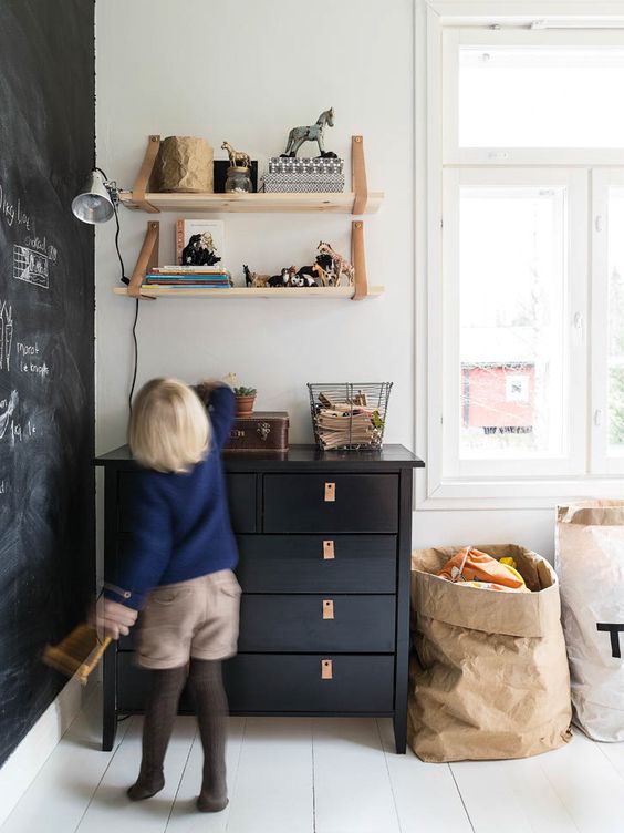Le plus grand changement sera le lit, nous avons opté pour le lit Kura de Ikea que nous achèterons en seconde main. Même s’il est grand pour sa petite chambre, nous aimons son côté cabane/coin repos et lit superposé. Nous gagnons également un couchage lorsque des amis viennent ou dans le cadre de notre troc de maison. J’appliquerai certainement des stickers ou du papier peint ou du bois sur les côtés blancs. Et pour finir j’accentuerai le côté cabane avec des rideaux légers en lin.