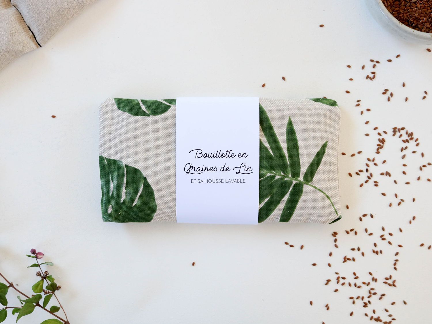 Niveau packaging, je m’efforce d’être de plus en plus dans l’emballage minimaliste plutôt que le suremballage. Maintenant, lorsque vous déballez votre bouillotte vous avez le bandeau (avec les précautions d’emploi au dos), la carte postale de conseils d’utilisation et aussi le petit lien en lin (compostable).