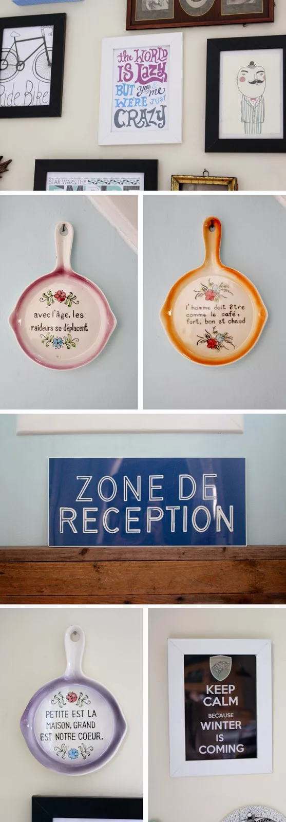 J’aime beaucoup dans la déco ces petites phrases par-ci par-là. Voici nos phrases du