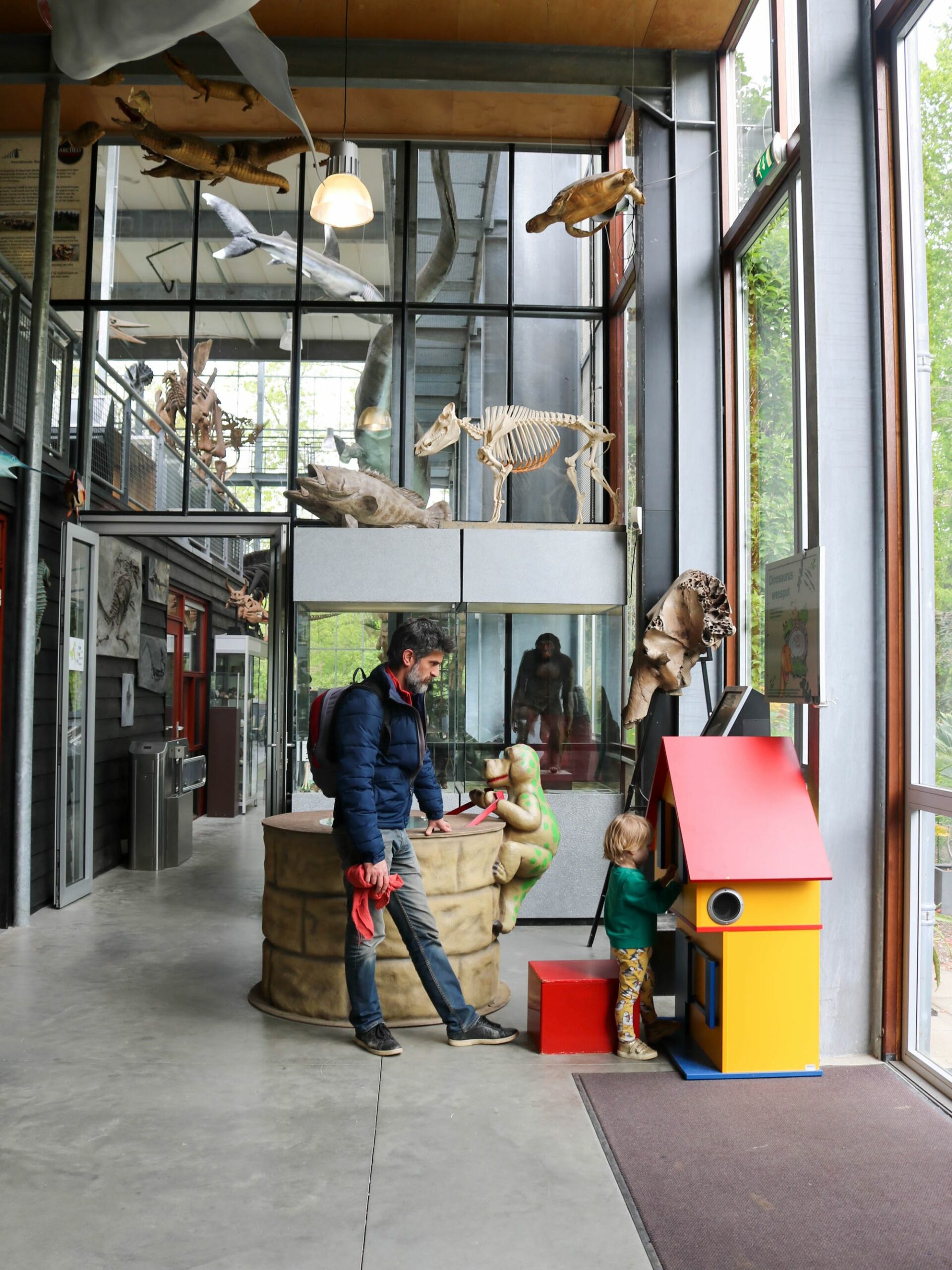 Ensuite nous sommes allés au Parc des Dinosaures Oertijd Museum à Boxtel . Ce parc est très original, nous nous sommes beaucoup amusés! Il y a une partie extérieure où des dinosaures tailles réelles sont exposés dans un beau parc et une partie intérieure avec des squelettes et expériences à faire. Le tout entrecoupé de jeux pour les enfants et pour les grands 😉 dont des fouilles archéologiques à la balayette! Boutique, petite restauration et aire de pic nique sont sur place. D’ailleurs dans la boutique j’ai beaucoup aimé les produits fabriqués par un CAT (centre d’aide par le travail), une belle façon de faire travailler les locaux dans un projet qui a du sens. J’oubliai ! Tout est à hauteur pour les plus petits et quand ça ne l’est pas : il y a les tabourets … même dans les toilettes! Génial!