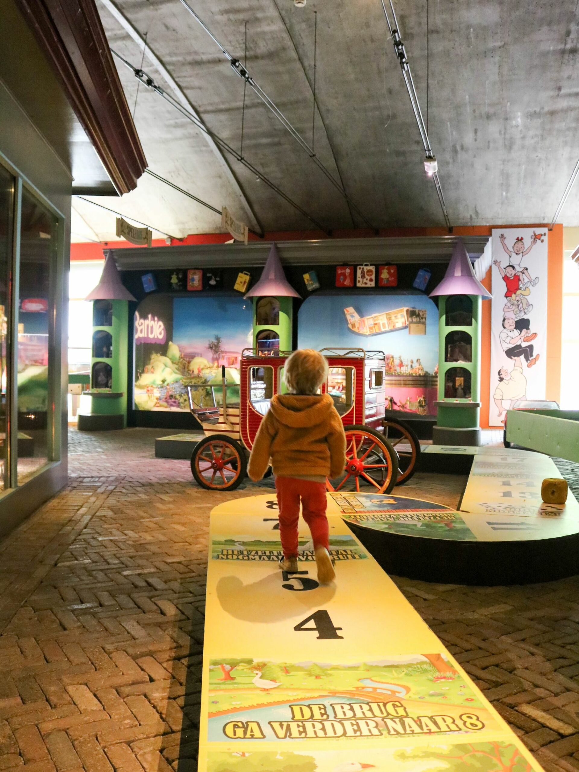 Puis nous sommes allés au Musée du Jouet Speelgoed Museum à Spelebos. Un musée des jeux anciens et contemporains où les enfants peuvent actionner les éclairages ou mettre en marche le circuit du train ou jouer aux dames géantes ou aux échecs géants. Bref de quoi se régaler les yeux et les petites mains touchent à tout! Le musée se trouve au fond d’un grand parc arboré où il y a des supers jeux extérieurs et une brasserie restaurant. Nous y sommes allés un dimanche, il n’y avait pas grande monde. Après ce musée, nous sommes allés visiter Best une petite ville avec un moulin. Nous avons flâné dans les rues, le cimetière et surtout dans les parcs où Loup s’est amusé dans les fontaines 🙂