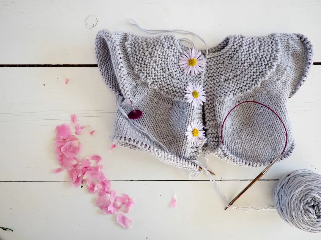 Vous l’avez vu passé sur Instagram, voici donc le petit cardigan tricoté en une semaine top chrono. J’ai utilisé le patron de Citronille , le cardigan à encolure arrondie et de la laine de Bergère de France que j’ai doublée.