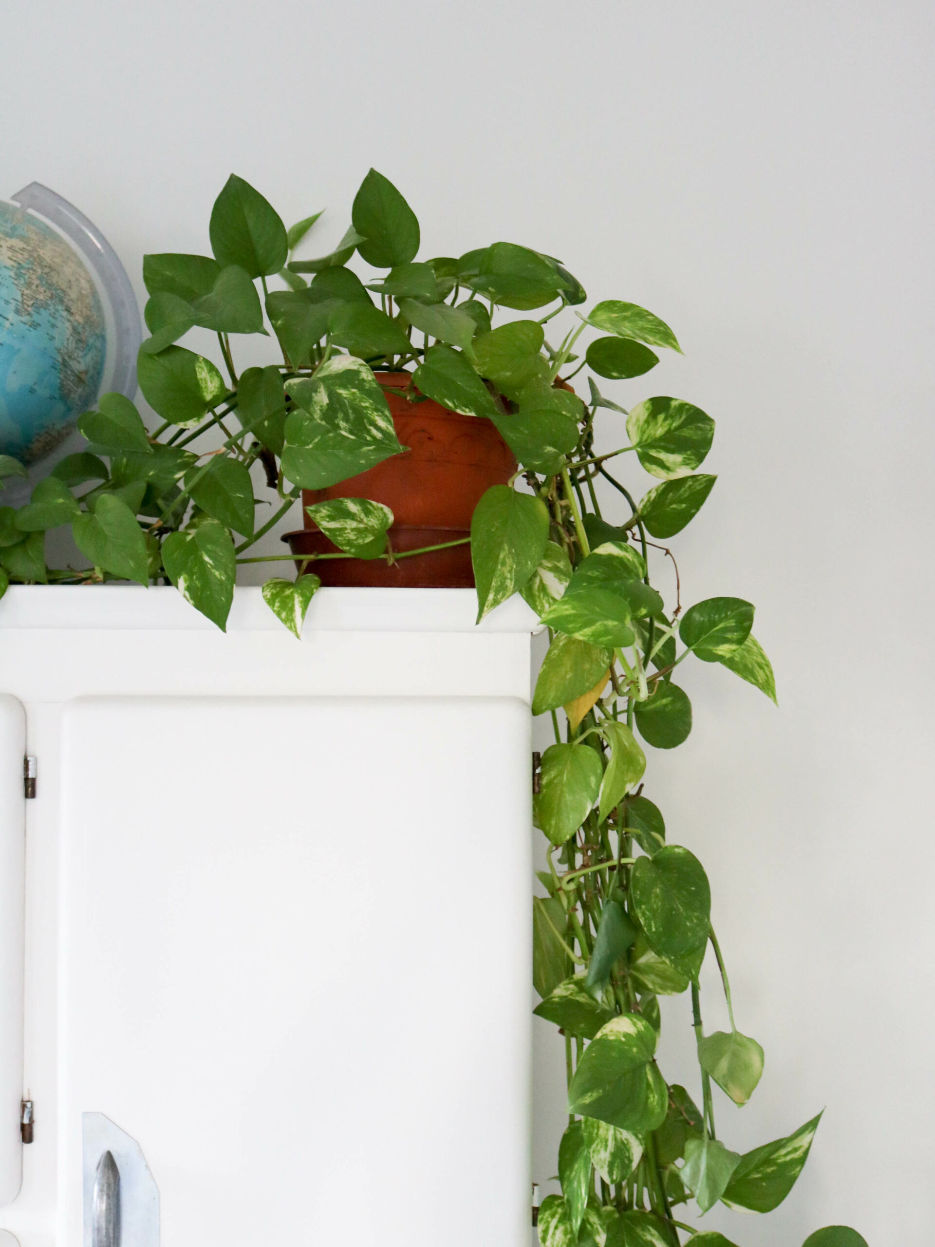 S’il y a une plante d’intérieur qui est facile à vivre c’est bien lui : le pothos! Aussi connu sous le nom du lierre du diable, il est très simple à entretenir (et à garder en vie) même pour un débutant. Ici c’est une plante de cœur car elle appartenait à ma grand-mère disparue, il doit avoir 15 ans!