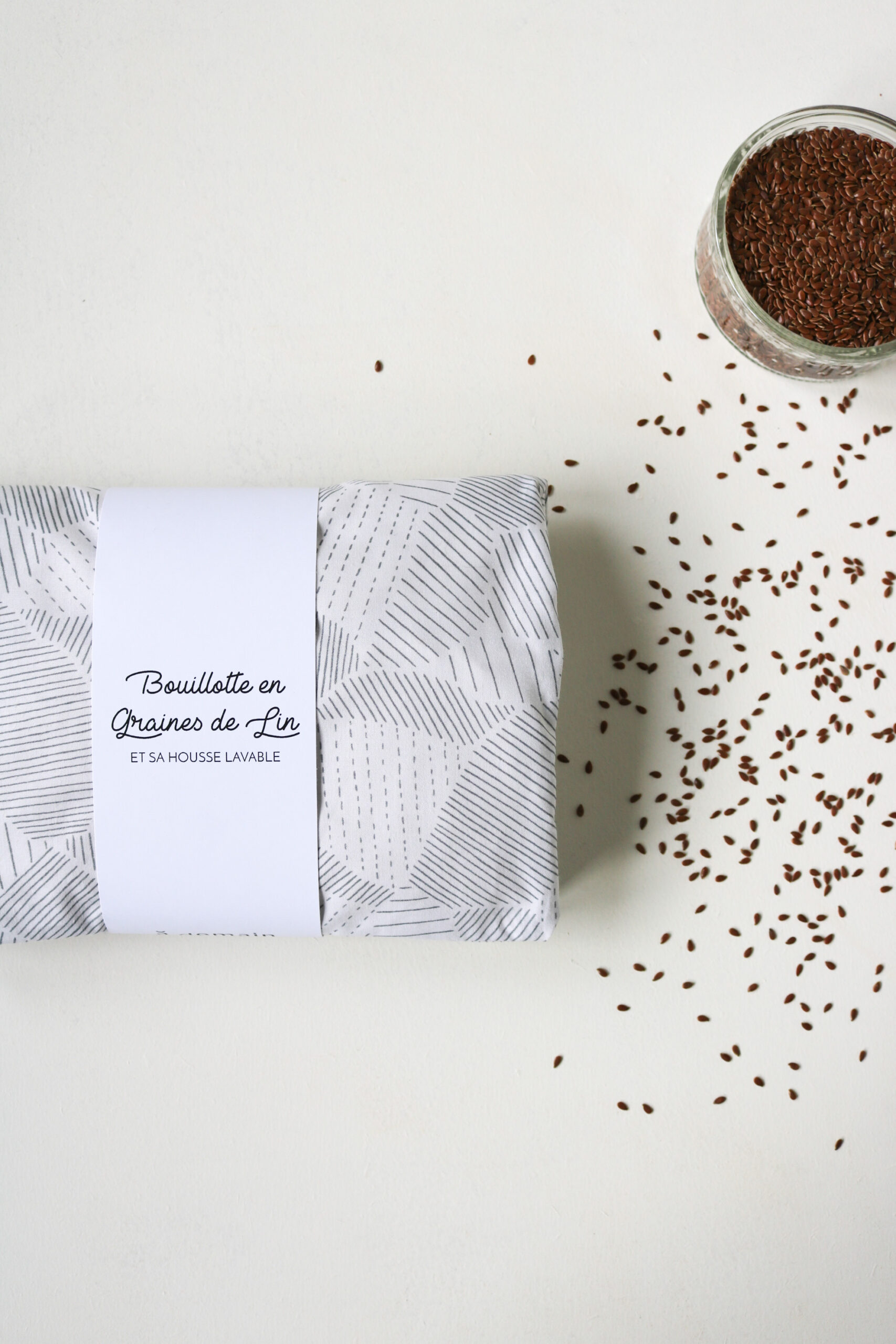 – un coussin bouillotte contenant les graines de lin mesurant environ 20 cm sur 40 cm. Les graines sont réparties dans 5 compartiments leur permettant d’être disposées uniformément. Ce coussin est réalisé dans un tissu 100 % lin, naturel, non teint et fabriqué dans le nord de la France. Les graines de lin proviennent des Flandres (achetées directement chez un producteur soucieux de la qualité de ses graines).