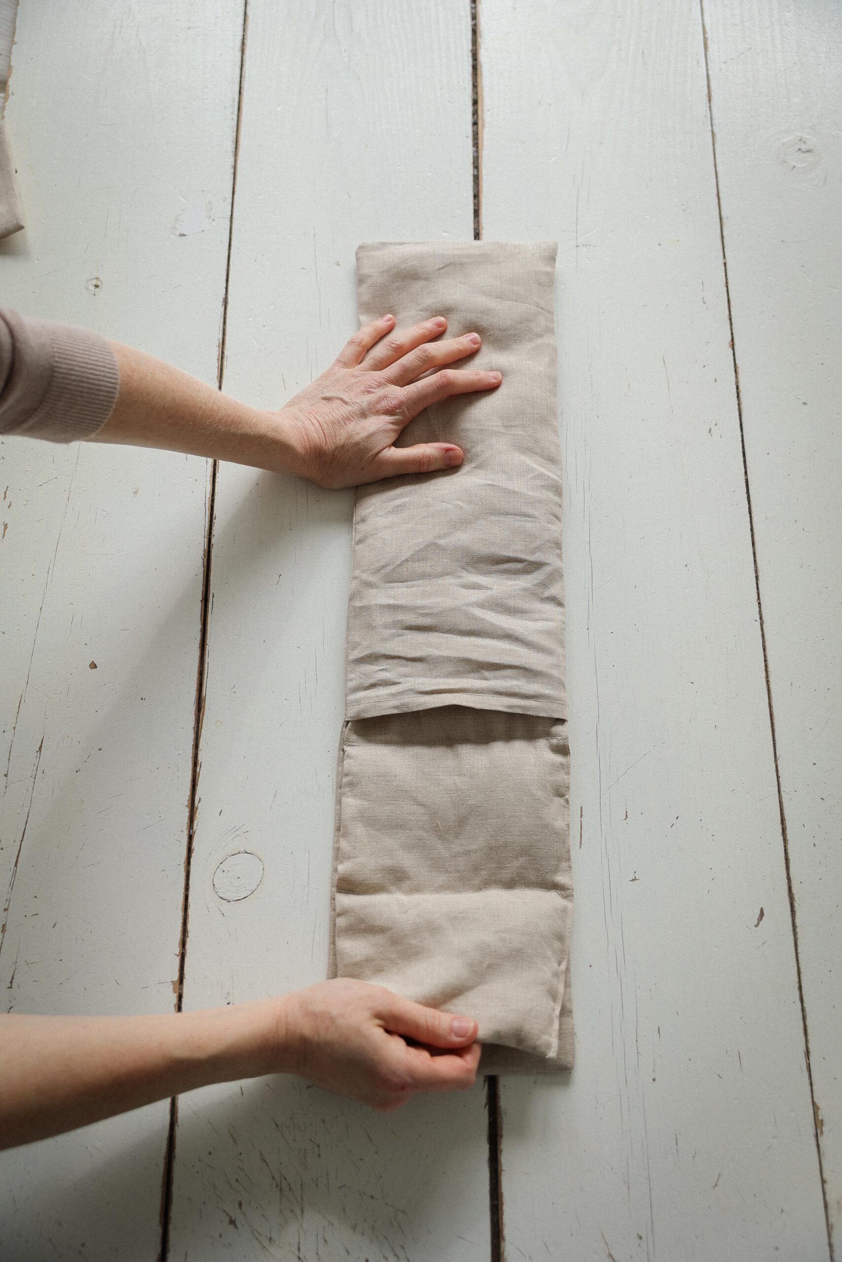 Avec son grand format (60 × 15 cm) et son poids idéal (550 grammes), cette longue bouillotte cervicale épouse parfaitement la nuque, le dos, le ventre ou les jambes. Les graines de lin locales sont réparties en compartiments pour une diffusion homogène de la chaleur ou du froid.