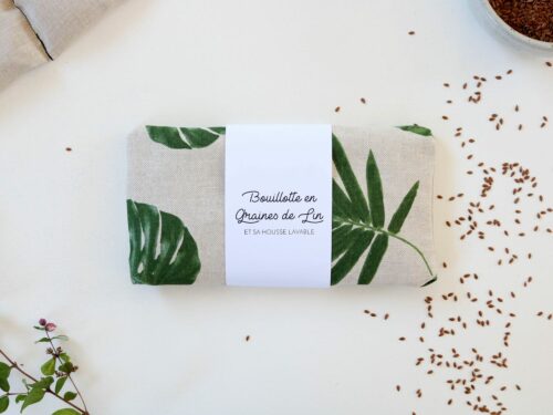 – un coussin bouillotte contenant les graines de lin mesurant environ 20 cm sur 10 cm. Les graines sont réparties dans 2 compartiments leur permettant d’être disposées uniformément. Ce coussin est réalisé dans un tissu 100 % lin, naturel, non teint et fabriqué dans le nord de la France. Les graines de lin proviennent des Flandres (achetées directement chez un producteur soucieux de la qualité de ses graines).