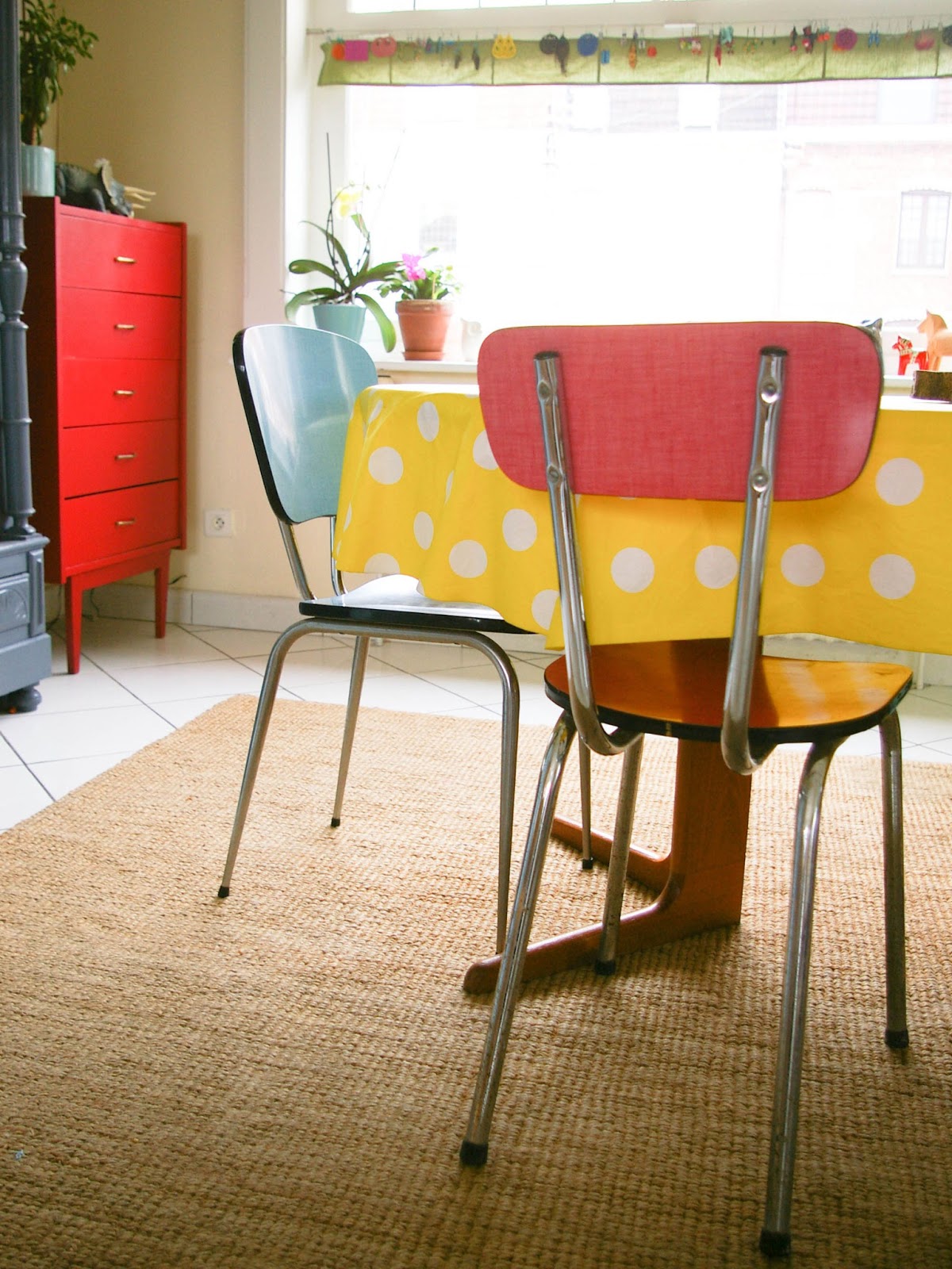 Si quelqu’un m’avait dit un jour que j’aimerai les chaises en formica je lui aurai rit au nez! Je vais me dire que seuls les imbéciles ne changent pas d’avis… Quand j’ai installé (pour un projet avec ma petite sœur) ces chaises en formica de toutes les couleurs autour de ma table et les ai photographiées j’ai fait : “Ouahhhhhh on dirait une salle à manger que même nos parents je suis sûre ils avaient la même ” (oui quand je suis prise par surprise je parle en “j’ai 5 ans”).