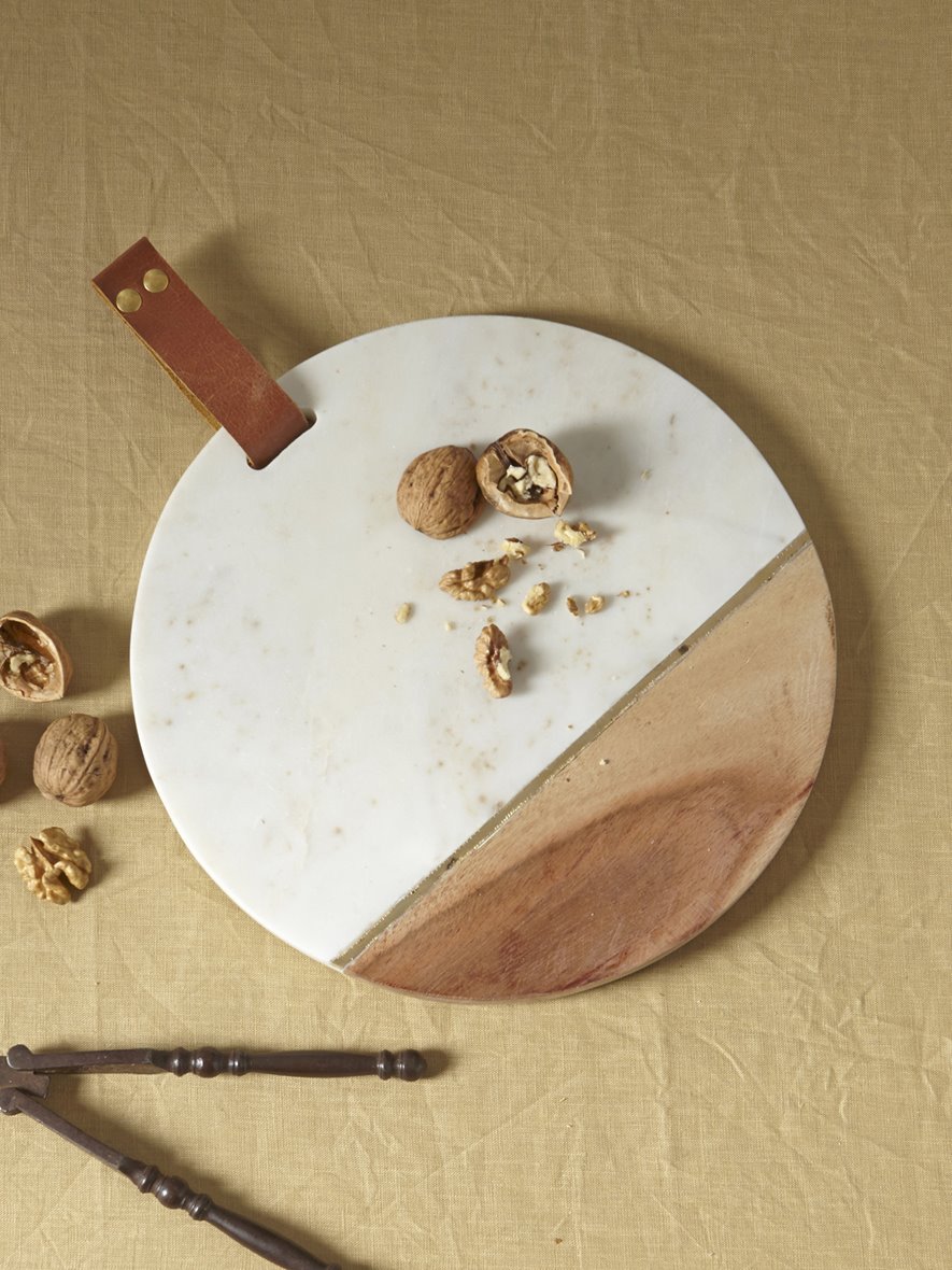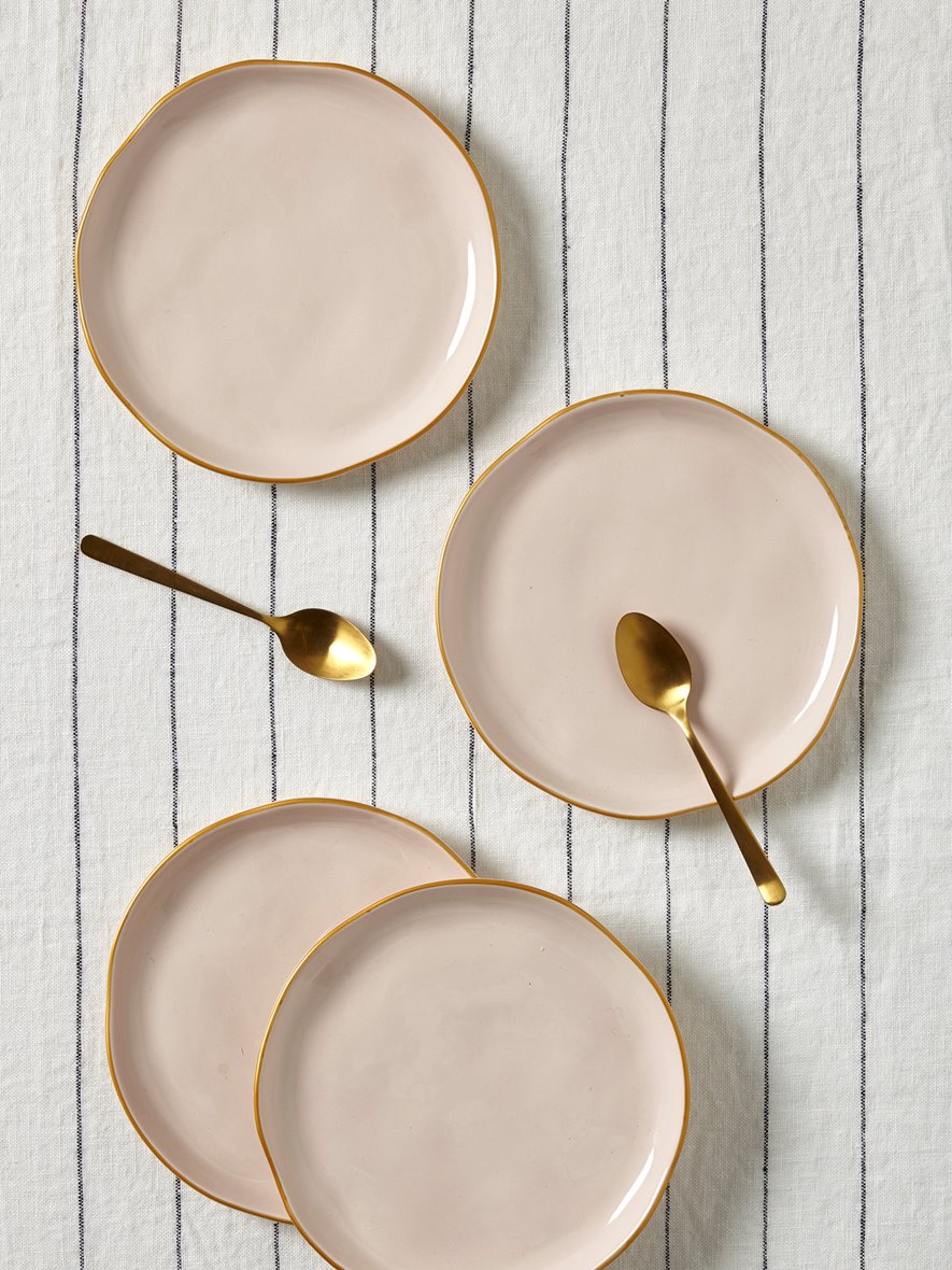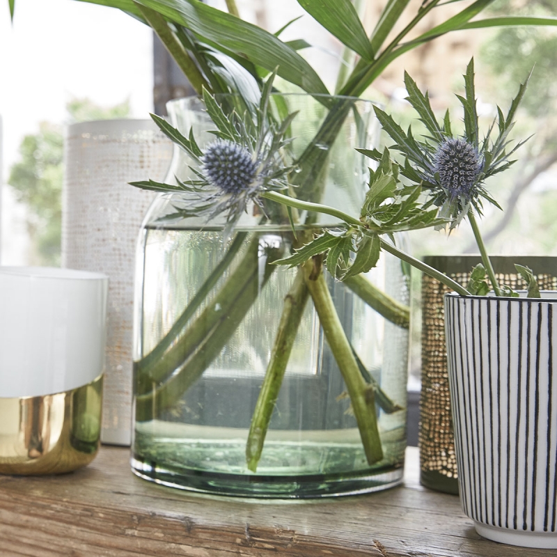 J’ai eu un coup de cœur pour ces belles assiettes à dessert roses à bords dorés. Leur côté irrégulier leur donne une touche d’authenticité. J’adore! Et cette planche à découper qui mixe marbre et bois avec son petit lien en cuir serait parfait pour accompagner le fromage à la fin d’un repas. Comme vous le savez, j’adore les fleurs et il me manque un grand vase à large bord pour faire des gros bouquets, celui-ci en verre kaki serait parfait.