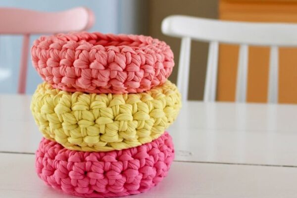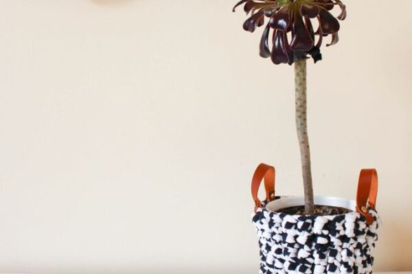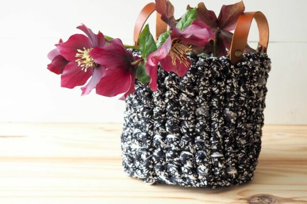 Rassembler 2 matières que j'aime : le cuir et le coton que je crochète, Pour créer des jolis petits paniers à trésors,  Trésors de bijoux, de plantes, de matériel[...]