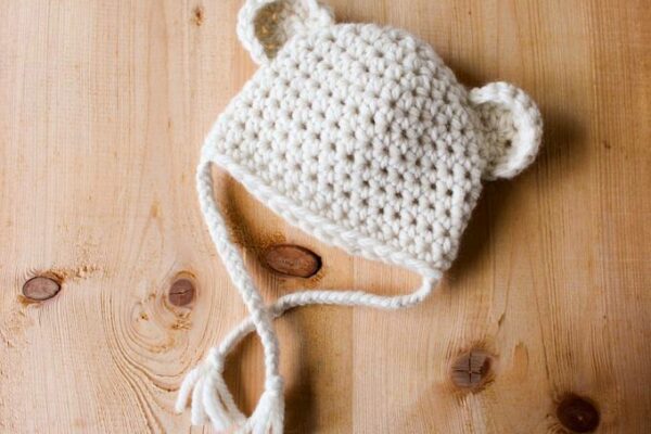 Patron du petit bonnet au crochet “Petit Ourson des neiges”