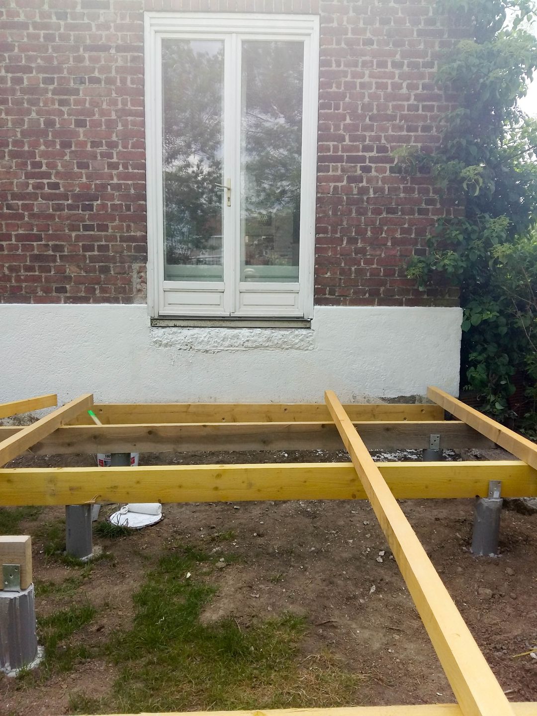 - posé les poutres et les lambourdes puis les protéger de la pluie