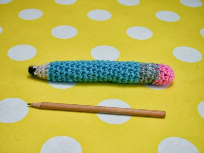 Un crayon au crochet pour faire un cadeau à un ami qui rêve que “je lui offre des crayons dédicacés”, c’est chose faite! J’ai utilisé le tutoriel de Petit Pixel très bien fait.