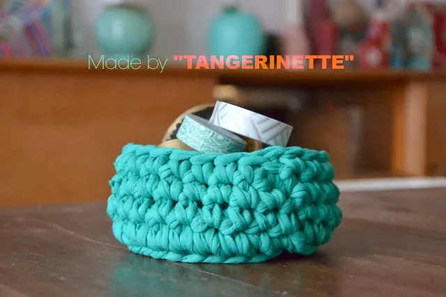 Fabienne m’a commandé une corbeille en crochet pour y mettre ses petits trésors, la voici chez elle dans son atelier!